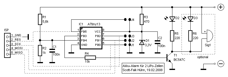 Software für ATtiny13 mit Quelltext in Assembler vom 08.03.2008 | akkualarm-v100.zip |